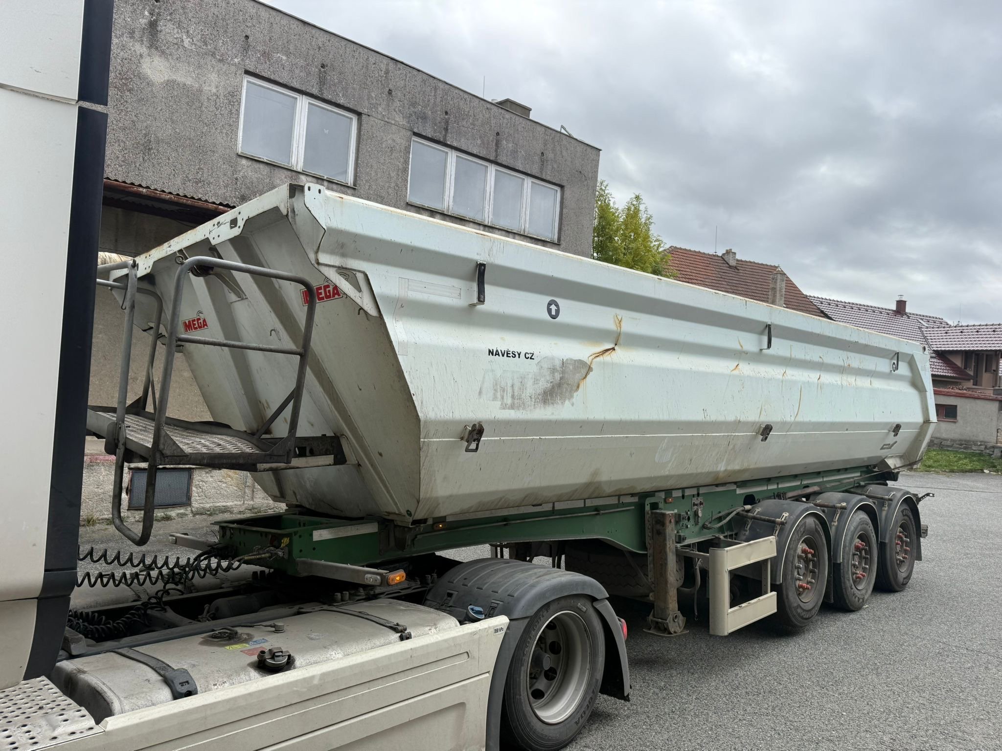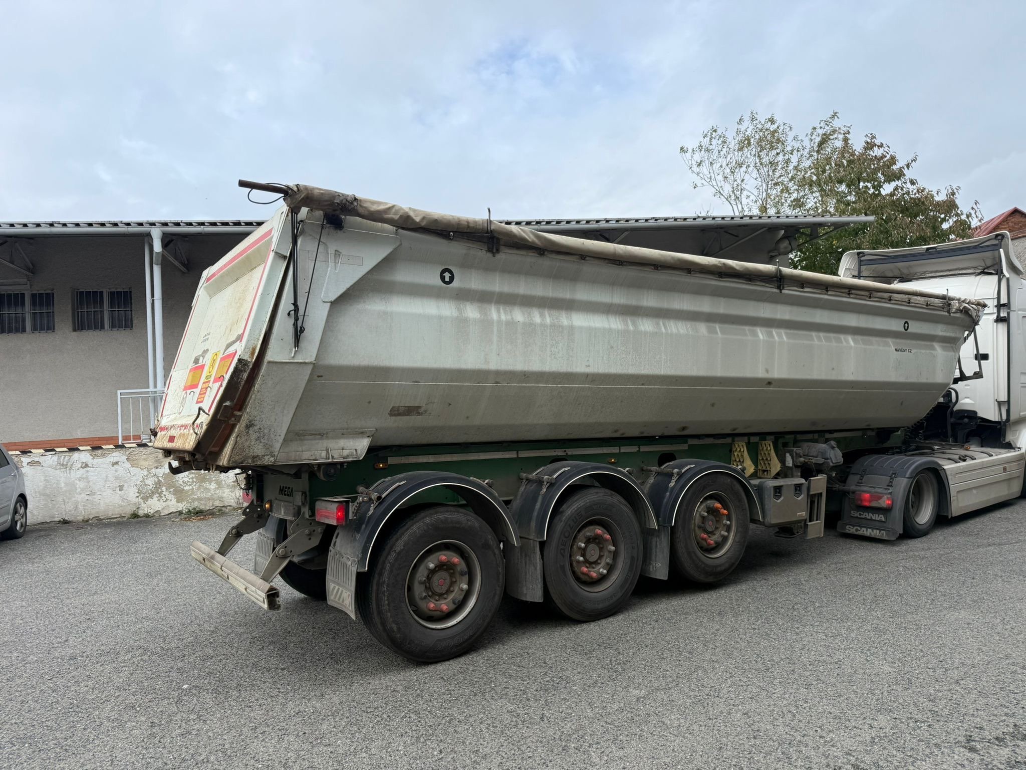 Rv 2/2029. Stk do 1/2026 Oneu 395/65R22.5 Typ MEGA MNW A NW4 -9B1 Provozni hmotnost 6560kg Celkova 42000kg 3 osy Max rxchlost 100km/h Maves je havarovany převraceny Odvoz po ose je mozny