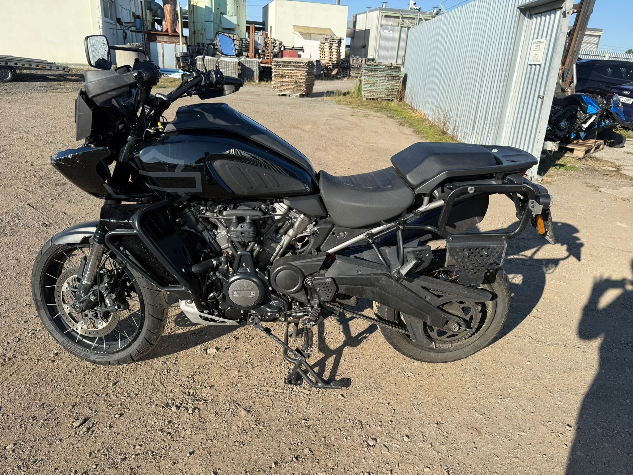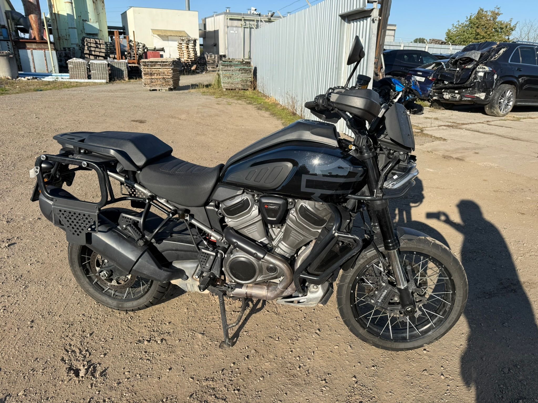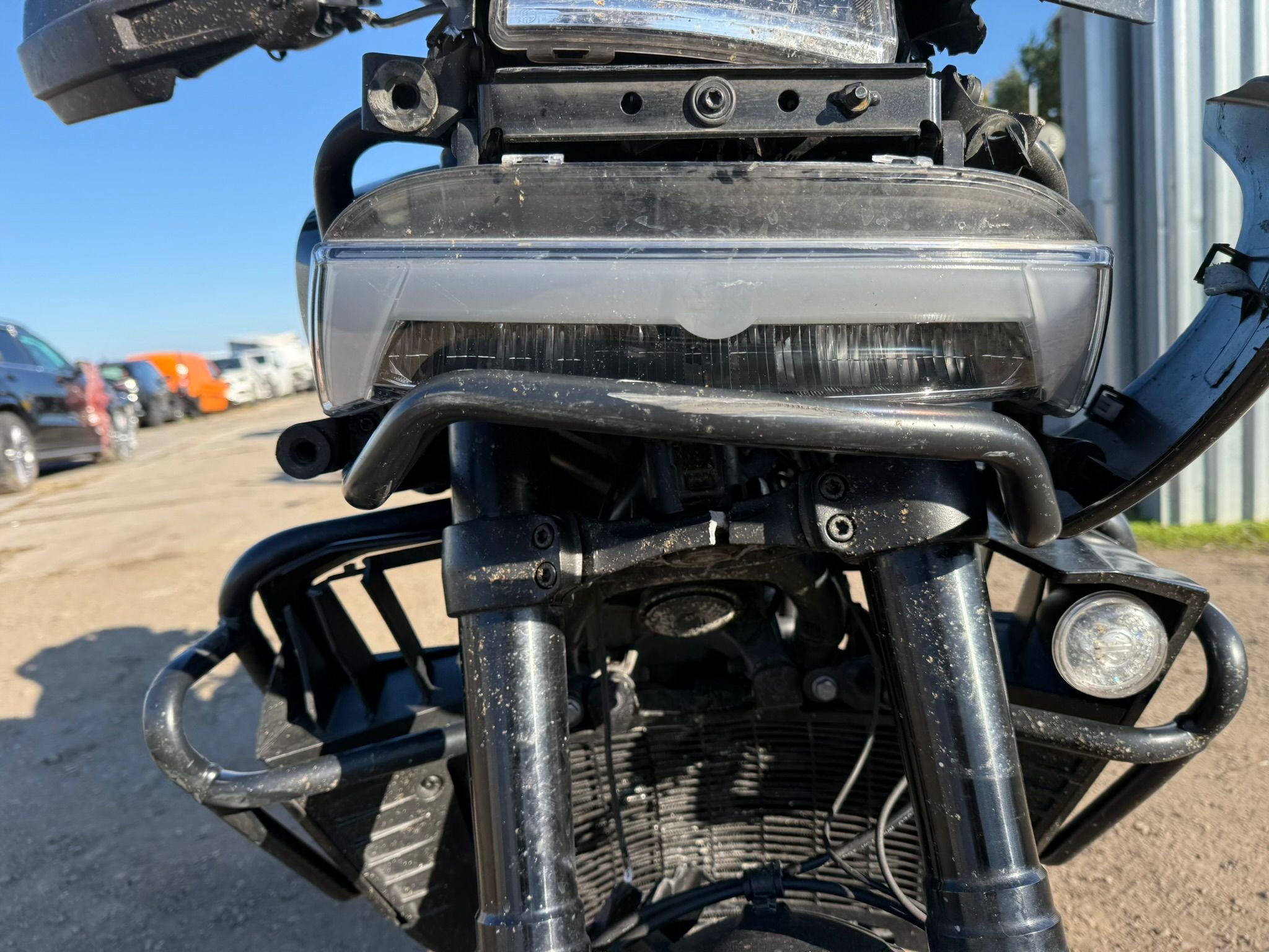 Harley Davidson Pan America RA1250S 112kw rv:2023/7 najeto:27456km. 1x majitel, 2x klíč 1x flop,plná výbava ,vyhřívané rukojeti. Drátěné kola. Držáky kufru. Havarované. Přední brejle. Lešení. Vidlice???poškozen podsedlák. Přední světlo hlavní ok. Kola ok. Motor start. Cena včetně DPh