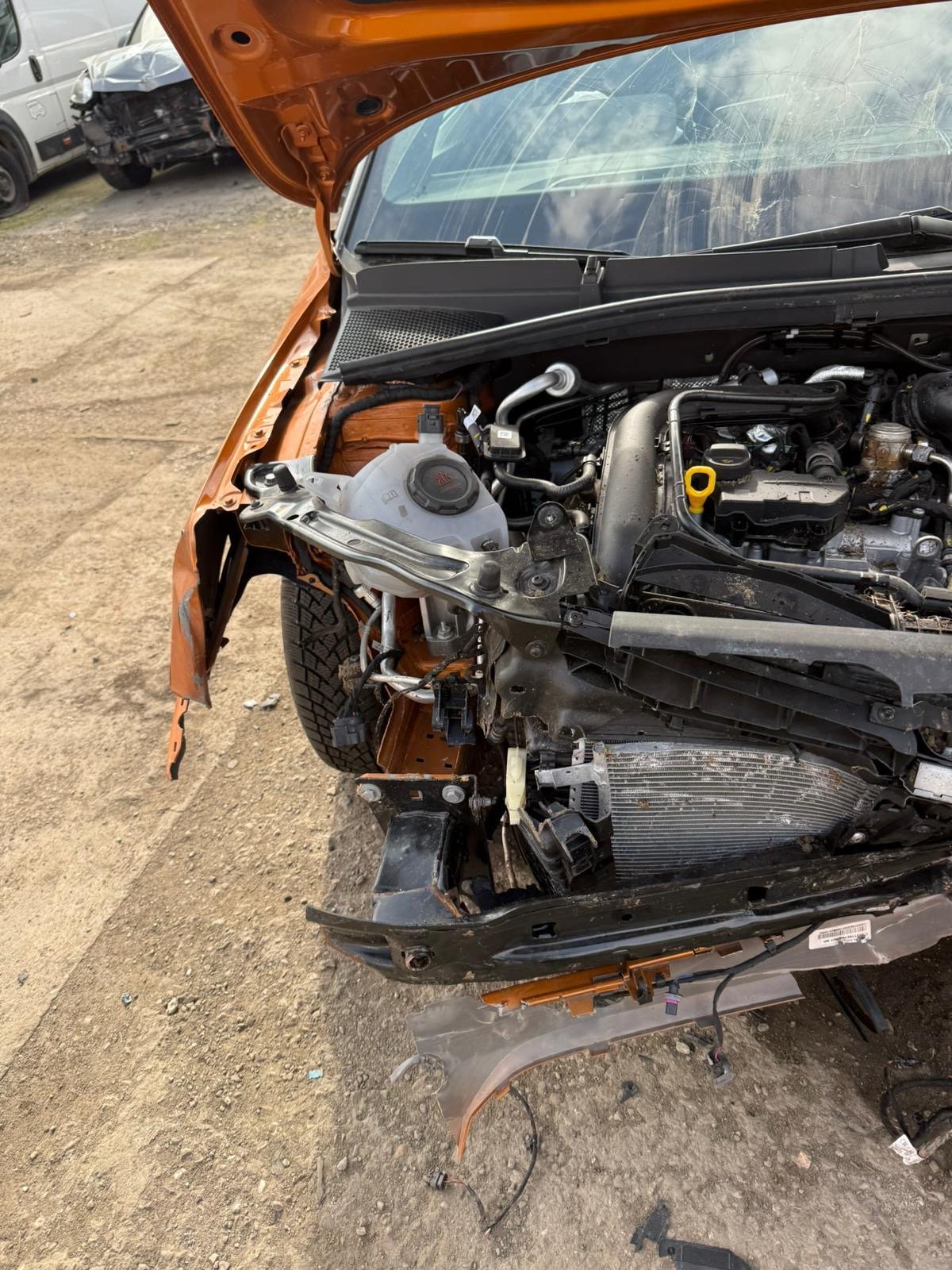 Havar predek spodem. Celni aurbagy vystreleny. Praskly drzak prevodovky. Strecha ok. Poskozena naprava. Zohle vin